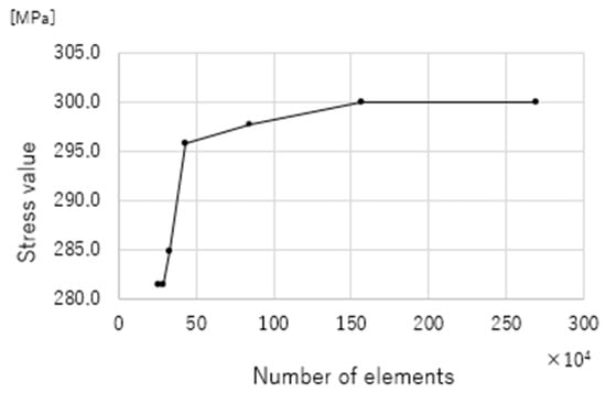 Mesh convergence test. The optimal mesh size was determined by confirming the conditions under which the stress variation remained below 1%. This choice balances the analysis precision and computational efficiency, allowing high accuracy while minimizing the calculation time.