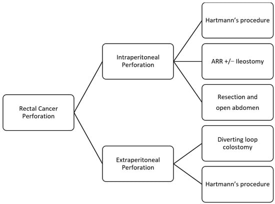 Flowchart for the management of rectal cancer perforation (ARR: Anterior Rectal Resection).