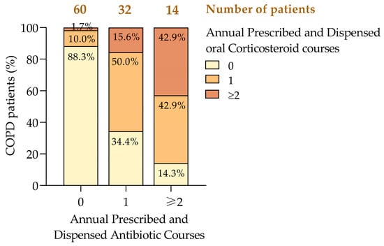 Cross-tabulation of annual prescriptions of antibiotic and oral corticosteroid courses in COPD patients. COPD, chronic obstructive pulmonary disease.