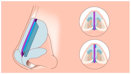 - Samaha, M.; Rassouli, A. Spreader graft placement in endonasal rhinoplasty: Technique and a review of 100 cases. Plast. Surg. 2015, 23, 252–254. [Google Scholar] [CrossRef]