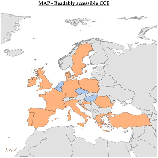 CCE Accessibility in Europe—The map illustrates the availability of colon capsule endoscopy (CCE) across European countries. Orange indicates countries where CCE is available, blue shows countries where it is unavailable, and grey represents countries with unknown CCE availability status. The diagram was created using Bing Maps, with support from Australian Bureau of Statistics, GeoNames, Microsoft, Navinfo, Open Places, OpenStreetMap, Overture Maps Foundation, TomTom, and Zenrin [15].