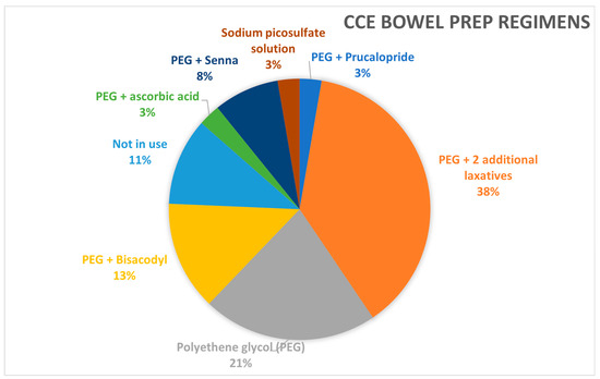 Bowel preparation regimens can be classified into three categories: PEG with two additional laxatives, PEG with one additional laxative, and PEG alone. The most used regimen is PEG, with two additional laxatives, chosen by 38% of respondents. This preference is due to the critical importance of high-quality bowel cleansing in CCE, given the inability to wash the mucosa as in colonoscopy. A meta-analysis conducted by Bjoersum-Meyer et al. showed that PEG combined with magnesium citrate achieved the highest cleansing rate [25]. However, in this survey, PEG with one additional laxative was not very popular, and no centres reported using magnesium citrate.