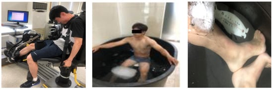 - Yeung, S.; Ting, H.; Hon, M.; Fung, Y.; Choi, M.; Cheng, C.; Yeung, W. Effects of cold water immersion on muscle oxygenation during repeated bouts of fatiguing exercise: A randomized controlled study. Medicine 2016, 95, e2455. [Google Scholar] [CrossRef] [PubMed]