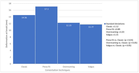 Comparison of deformation at break for different cementation techniques.