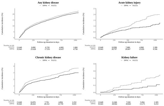 Significant differences in renal outcomes were observed between the SGLT2i and DPP4i groups (Table 2).