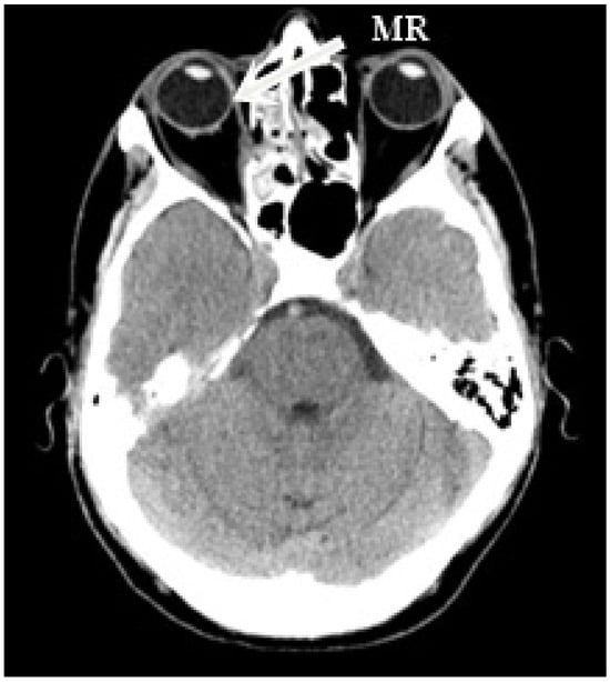- Bhatti, M.T.; Schmalfuss, I.M.; Mancuso, A.A. Orbital complications of functional endoscopic sinus surgery: MR and CT findings. Clin. Radiol. 2005, 60, 894–904. [Google Scholar] [CrossRef] [PubMed]