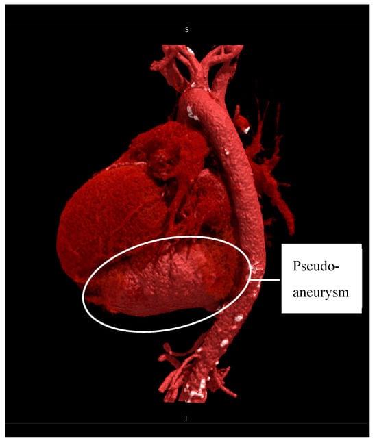 - Grosu, A.; Pedrotti, P.; Quarta, G.; Brambilla, P.; Roghi, A.; Gavazzi, A.; Senni, M. The Truth Behind False Aneurysms. Society for Cardiovascular Magnetic Resonance. [Internet]. Available online: https://scmr.org/cases-of-scmr/number-14-12/ (accessed on 1 April 2024).