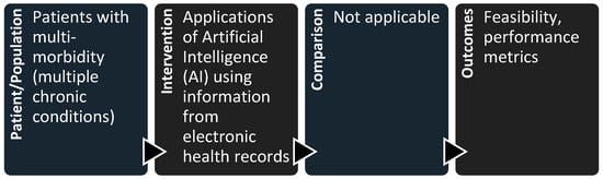 Multimorbidity was defined as the presence of two or more chronic conditions, without limitation to specific diseases. This definition was consistently applied in both the search strategy and the screening process for inclusion and exclusion criteria. Studies were included if they involved the analysis of any combination of chronic diseases and utilized artificial intelligence methods within electronic health records.