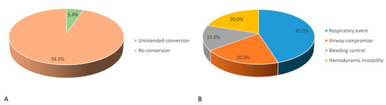 (A) Incidence and (B) causes of unintended conversion from non-intubated anesthesia to intubation anesthesia.