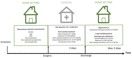 - Balthasar, A.J.R.; Lousberg, R.; Emans, P.J.; Vossen, C.J. Gaining insight in the peri-operative pain trajectory: A pilot study assessing feasibility of experience sampling method among patients undergoing ambulatory surgery. Eur. J. Anaesthesiol. 2021, 38, 550–552. [Google Scholar] [CrossRef]