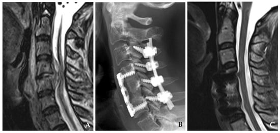 - Kim, S.K.; Park, J.B.; Chung, J.Y.; Lee, D.H.; Kim, Y.Y.; Park, Y.J.; Lee, N.H. Anterior cervical debridement and fusion for cervical pyogenic spondylodiscitis: Use of anterior cervical plating or not? Spine 2020, 45, 431–437. [Google Scholar] [CrossRef]