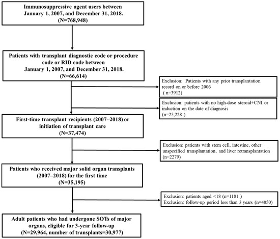 Chicago/Turabian StyleLee, Ah Young, Jonghyun Jeong, Kyu-Nam Heo, Soyoung Park, Young-Mi Ah, Ji Min Han, Ju-Yeun Lee, and Sang Il Min. 2025. "Complications Associated with Immunosuppressive Agents in Solid Organ Transplant Recipients: A Nationwide Analysis" Journal of Clinical Medicine 14, no. 10: 3602. https://doi.org/10.3390/jcm14103602