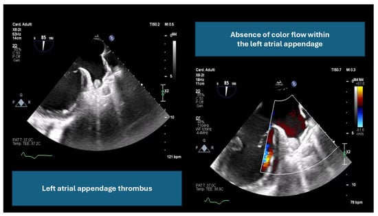 - Serpa, F.; Rivera, A.; Fernandes, J.M.; Braga, M.A.P.; Araújo, B.; Ferreira Felix, I.; Ferro, E.G.; Zimetbaum, P.J.; d’Avila, A.; Kramer, D.B. Intracardiac vs transesophageal echocardiography for left atrial appendage occlusion: An updated systematic review and meta-analysis. Heart Rhythm. 2025, 22, 786–795. [Google Scholar] [CrossRef] [PubMed]