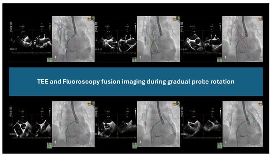 - Afzal, S.; Piayda, K.; Hellhammer, K.; Veulemans, V.; Wolff, G.; Heidari, H.; Stüwe, D.; Kanschik, D.; Polzin, A.; Kelm, M.; et al. Real-time echocardiography-fluoroscopy fusion imaging for left atrial appendage closure: Prime time for fusion imaging? Acta Cardiol. 2021, 76, 1004–1012. [Google Scholar] [CrossRef] [PubMed]