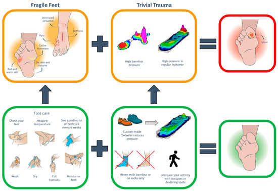 - Jarl, G.; van Netten, J.J.; Lazzarini, P.A. Fragile Feet and Trivial Trauma: Communicating the Etiology of Diabetic Foot Ulcers to Patients. J. Am. Podiatr. Med. Assoc. 2023, 113, 21-027. [Google Scholar] [CrossRef]