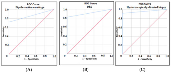 APA StyleÖztürk, F., Sağnıç, S., Fırtına Tuncer, S., & Tuncer, H. A. (2025). Diagnostic Efficiency of Endometrial Sampling Methods and Risk Factors for Endometrial Carcinoma and Precursor Lesions in Premenopausal Women. Journal of Clinical Medicine, 14(11), 3658. https://doi.org/10.3390/jcm14113658