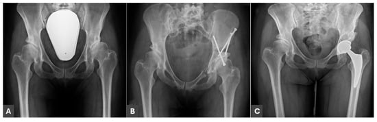 - Osawa, Y.; Hasegawa, Y.; Seki, T.; Amano, T.; Higuchi, Y.; Ishiguro, N. Significantly Poor Outcomes of Total Hip Arthroplasty After Failed Periacetabular Osteotomy. J. Arthroplast. 2016, 31, 1904–1909. [Google Scholar] [CrossRef]