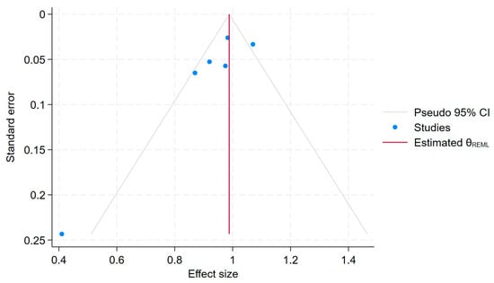 - Sterne, J.A.C.; Sutton, A.J.; Ioannidis, J.P.A.; Terrin, N.; Jones, D.R.; Lau, J.; Carpenter, J.; Rücker, G.; Harbord, R.M.; Schmid, C.H.; et al. Recommendations for examining and interpreting funnel plot asymmetry in meta-analyses of randomised controlled trials. BMJ 2011, 343, d4002. [Google Scholar] [CrossRef]