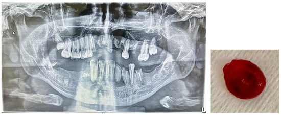 The therapy of PIC is determined by the location of the cyst, the anatomical relationships with essential structures, the clinical situation, and the patient’s general health status. Surgical therapy includes enucleation and marsupialisation [7], while non-surgical therapies are endodontic treatment [8], decompression [9,10], the aspiration and irrigation technique [11], therapy using calcium hydroxide [12,13], lesion sterilisation and repair [14], the Apexum procedure [15,16], and the use of simvastatin and epigallocatechin [17].