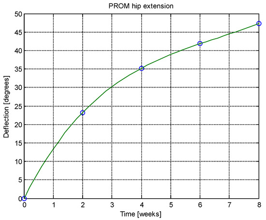 PROM hip extension versus time.