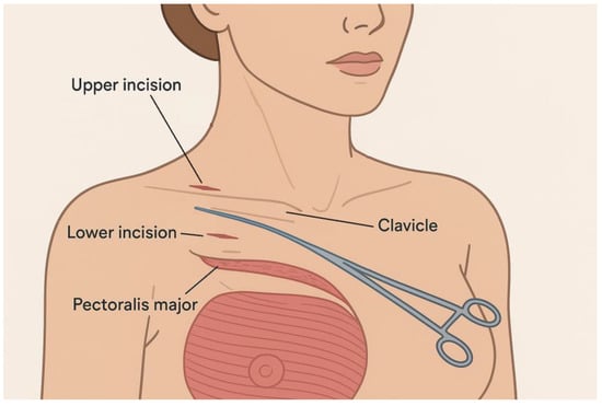 - Xie, Y.; Hu, X.; Du, Z.; Liang, F.; Lv, Q.; Li, B. Minimally Invasive and Innovative Management of Prosthesis Infections in Endoscopic-Assisted Breast Reconstruction. Aesth Plast. Surg. 2024, 48, 266–272. [Google Scholar] [CrossRef]