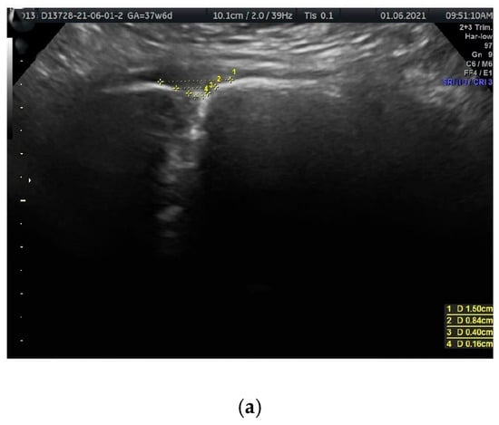 The evaluations were meticulously performed by an experienced examiner (JF), who has over 35 years of expertise in ultrasound imaging and conducts approximately 2500 examinations annually. The examiner’s proficiency is certified by the Polish Society of Gynaecologists and Obstetricians and the Fetal Medicine Foundation (London, UK).
