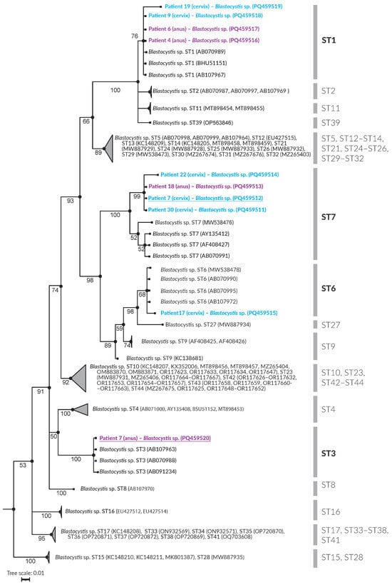 The sequences have been deposited in GenBank (accession numbers PQ459511–PQ459520). Blastocystis subtype nomenclature is according to Stensvold et al. [].