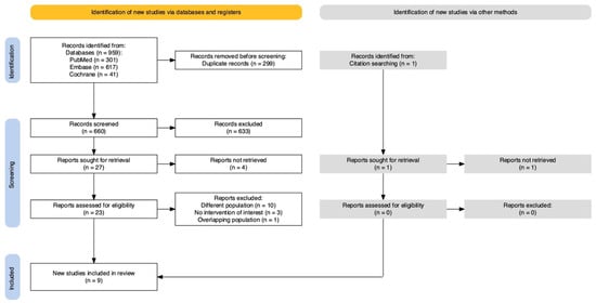 - Higgins, J.P.T.; Thomas, J.; Chandler, J.; Cumpston, M.; Li, T.; Page, M.J.; Welch, V.A. (Eds.) Cochrane Handbook for Systematic Reviews of Interventions (Version 6.4). 2023. Available online: https://training.cochrane.org/handbook/current (accessed on 19 September 2024).