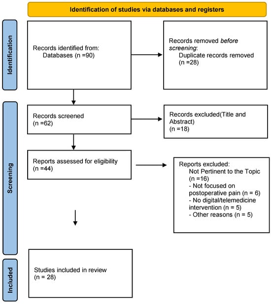 APA StyleAzzellino, G., Aitella, E., Ginaldi, L., Vagnarelli, P., & De Martinis, M. (2025). Use of Digital and Telemedicine Tools for Postoperative Pain Management at Home: A Scoping Review of Health Professionals’ Roles and Clinical Outcomes. Journal of Clinical Medicine, 14(11), 4009. https://doi.org/10.3390/jcm14114009