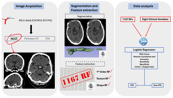 - Porto-Álvarez, J.; Mosqueira Martínez, A.; Martínez Fernández, J.; Sanmartín López, M.; Blanco Ulla, M.; Vázquez Herrero, F.; Pumar, J.M.; Rodríguez-Yáñez, M.; Minguillón Pereiro, A.M.; Bolón Villaverde, A.; et al. How Can Radiomics Help the Clinical Management of Patients with Acute Ischemic Stroke? Appl. Sci. 2023, 13, 10061. [Google Scholar] [CrossRef]