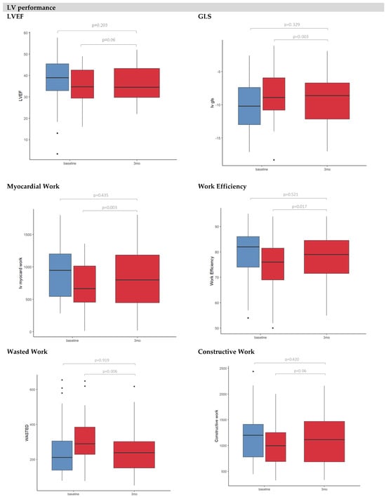 The echocardiographic features included the bidimensional and diastolic parameters (septal wall, posterior wall, LV end-diastolic diameter, LV end-diastolic volume, LA indexed volume, E/A ratio, E/e′ ratio), left and right ventricle function parameters (LVEF, GLS, LV indexed stroke volume, LV indexed stroke work, cardiac output, TAPSE, systolic pulmonary artery pressure, FAC, RV coupling ratio, RV free wall strain) and vascular function parameters (systemic arterial compliance, systemic arterial resistance index, LV end-systolic elastance (Ees), arterial elastance (Ea), ventricular–arterial coupling) (Table S1).