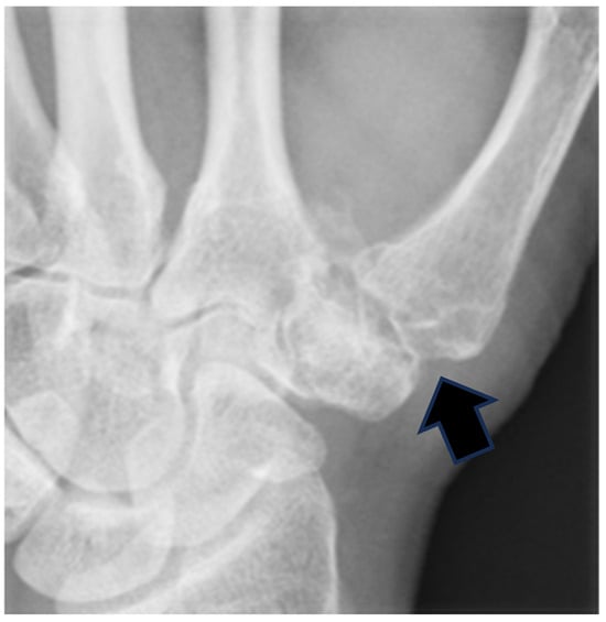 - Ferrão, A.; Morais, B.S.d.; Marques, N.; Nóbrega, J.; Monteiro, J.E.d.S.; Jorge, J.T.; Jorge, J.T.; Teixeira, F. Trapeziectomy and suture-button suspensionplasty for basilar thumb arthritis: Is it enough to prevent first ray subsidence? J. Hand Microsurg. 2023, 15, 23–30. [Google Scholar] [CrossRef]