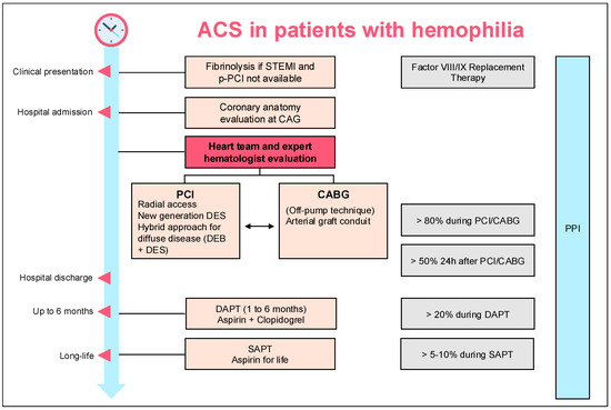 The current management of patients with ACS and bleeding disorders, such as hemophilia, is supported by small retrospective studies or expert consensus documents [9,10,11].