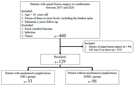 - Kawabata, A.; Yoshii, T.; Sakai, K.; Hirai, T.; Yuasa, M.; Inose, H.; Utagawa, K.; Hashimoto, J.; Matsukura, Y.; Tomori, M.; et al. Identification of Predictive Factors for Mechanical Complications After Adult Spinal Deformity Surgery: A Multi-Institutional Retrospective Study. Spine 2020, 45, 1185–1192. [Google Scholar] [CrossRef]