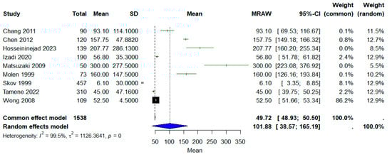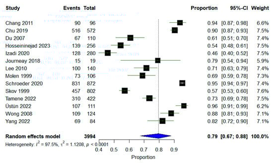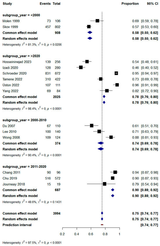| Subgroup: 2015 and after | Hosseininejad et al., 2023 [19], Izadi et al., 2020 [30], Schroeder et al., 2020 [28], Tamene, 2022 [9], and Yang et al., 2022 [26] | 7.95 | 1.29–49.00 | <0.0001 | 97.2 | Random-effects | Very high heterogeneity in recent studies, with no change in the context of results | |