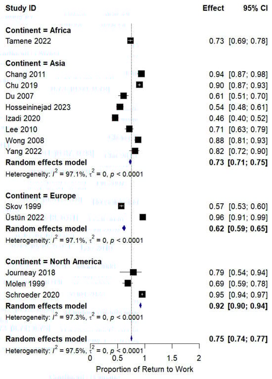 APA StyleSantos, W., Rojas, C., Isidoro, R., Lorente, A., Dias, A., Mariscal, G., Zabady, A. H., & Lorente, R. (2025). Return to Work After Work-Related Injuries: A Systematic Review and Meta-Analysis of Incidence and Determinants. Journal of Clinical Medicine, 14(12), 4343. https://doi.org/10.3390/jcm14124343