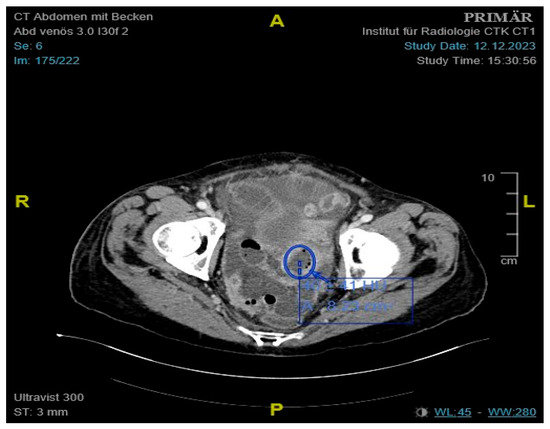 The diagnosis and treatment of GI TB are challenging due to the low sensitivity of symptoms and its nonspecific clinical presentation. Clinical features include constitutional symptoms such as anorexia, weight loss, and fever, as well as abdominal manifestations, such as a change in bowel habits, gastrointestinal bleeding, or organ masses [5]. These diverse presentations have led to GI TB being referred to as the “great mimicker” [6,7]. Differentiating GI TB from Crohn’s disease (CD) can be particularly challenging due to similar symptom constellations and clinical findings [8,9]. However, treatment strategies differ significantly. Other important differential diagnoses include abdominal malignancies [10,11,12]. Given the frequent overlap in clinical and imaging findings, accurate diagnosis requires a high index of suspicion and a thorough diagnostic workup.