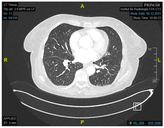 A 25-year-old male with a known history of Crohn’s disease presented with malaise, exertional dyspnea, and unintentional weight loss (~5 kg). He did not exhibit any signs of an acute infection. The patient has a migration background but no recent travel history or known exposure to TB. Physical examination was largely unremarkable aside from mild abdominal guarding.