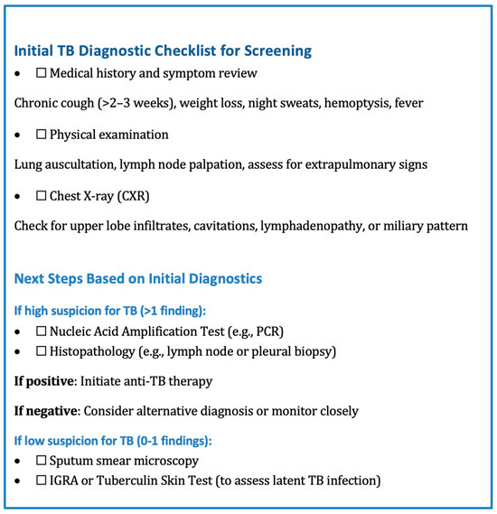 - Official American Thoracic Society/Infectious Diseases Society of America/Centers for Disease Control and Prevention Clinical Practice Guidelines: Diagnosis of Tuberculosis in Adults and Children—PMC. Available online: https://www.ncbi.nlm.nih.gov/pmc/articles/PMC5504475/ (accessed on 24 April 2024).
