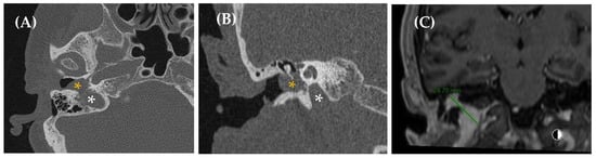 - Marco-Carmona, M.; Fraino, A.; Racines-Álava, E.; Asensio-Calle, J.F.; Villanueva-Rincón, J.M.; Trinidad-Ruiz, G.; Batuecas-Caletrío, Á. El papel de la RMN en el diagnóstico de la patología audiovestibular. Rev. ORL 2023, 15, e31479. [Google Scholar] [CrossRef]