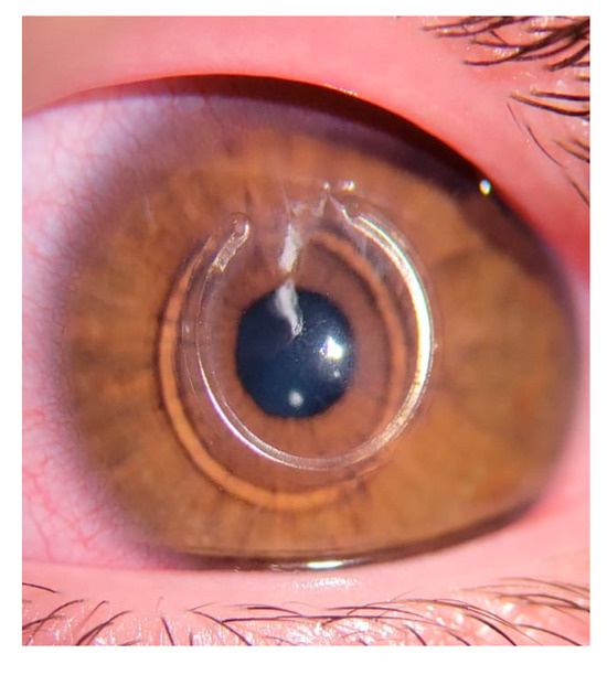 While longer segments have proven effective, the larger 340° and 355° rings are associated with a higher risk of complications, such as ring extrusion, corneal melting, and neovascularization [18,19,20]. These complications are primarily due to the proximity of the tip of the ICRS to the surgical incision [18,19,20]. To reduce these risks, variations in the arc length, such as 300° [12] and 320° [14,15,16,21], have been introduced (Figure 1). These options offer significant improvements with fewer adverse effects compared to those with the 340° and 355° rings [12,13,15,16,17,18,19,20,21].