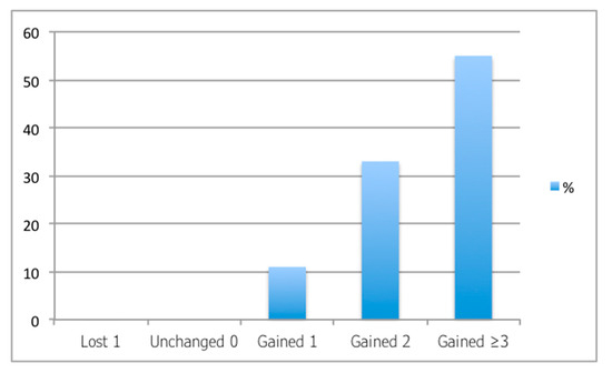 Number of lines gained/lost after implantation of 320° intracorneal ring segments.