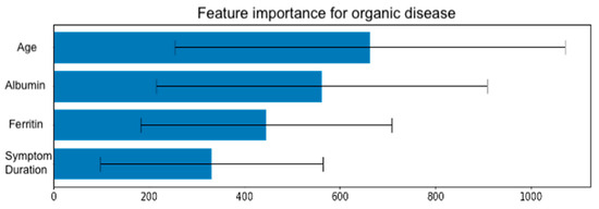 Feature importance for organic disease in patient notes.
