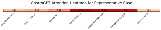 Attention heatmap visualization of a representative case processed by GastroGPT showing token-level weight distribution.