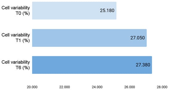 Correlations between the age of the patients and cell variability increase at 6 months after the procedure.