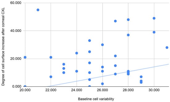 Correlations between the baseline cell variability and the degree of cell surface increase after CXL.