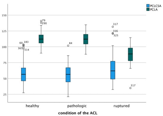 - Simon, R.A.; Everhart, J.S.; Nagaraja, H.N.; Chaudhari, A.M. A case-control study of anterior cruciate ligament volume, tibial plateau slopes and intercondylar notch dimensions in ACL-injured knees. J. Biomech. 2010, 43, 1702–1707. [Google Scholar] [CrossRef]