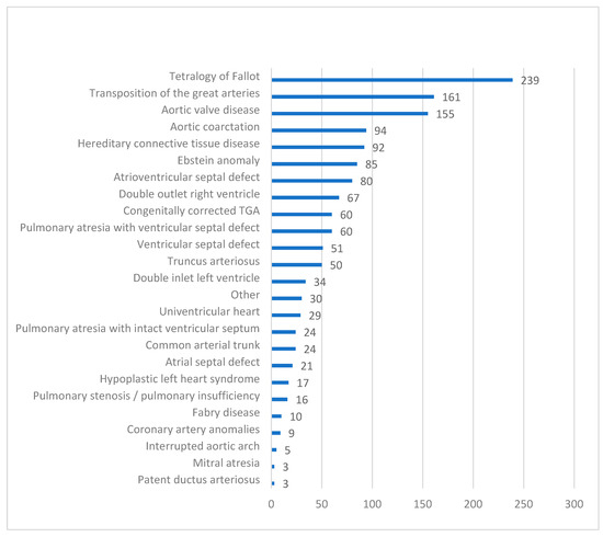 - Bauer, U.M.M.; Körten, M.-A.; Diller, G.-P.; Helm, P.; Baumgartner, H.; Ewert, P.; Tutarel, O. Cardiovascular risk factors in adults with congenital heart defects—Recognised but not treated? An analysis of the German National Register for Congenital Heart Defects. Int. J. Cardiol. 2019, 277, 79–84. [Google Scholar] [CrossRef]