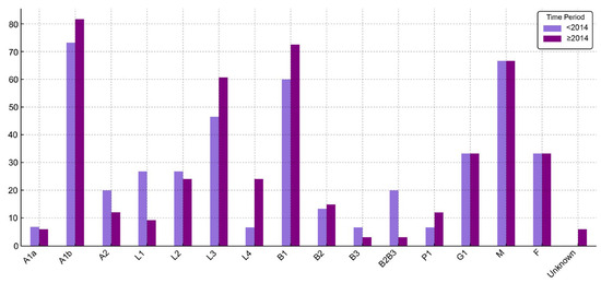 Further details regarding the classification of CD cases according to the Paris classification are presented in Table 4. Also, a comparative visualization of clinical and demographic characteristics of CD patients, stratified by time of diagnosis (before 2014 and starting with 2014), is presented in Figure 2.