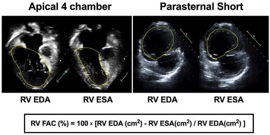 - Rudski, L.G.; Lai, W.W.; Afilalo, J.; Hua, L.; Handschumacher, M.D.; Chandrasekaran, K.; Solomon, S.D.; Louie, E.K.; Schiller, N.B. Guidelines for the echocardiographic assessment of the right heart in adults: A report from the American Society of Echocardiography endorsed by the European Association of Echocardiography, a registered branch of the European Society of Cardiology, and the Canadian Society of Echocardiography. J. Am. Soc. Echocardiogr. 2010, 23, 685–713; quiz 786–788. [Google Scholar] [CrossRef]